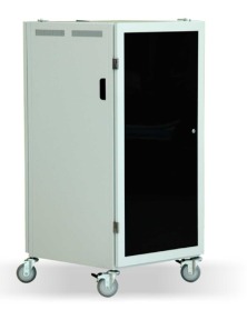 Armário móvel para equipamentos de videocirurgia, onde o monitor pode ser utilizado acima do armário, externamente.