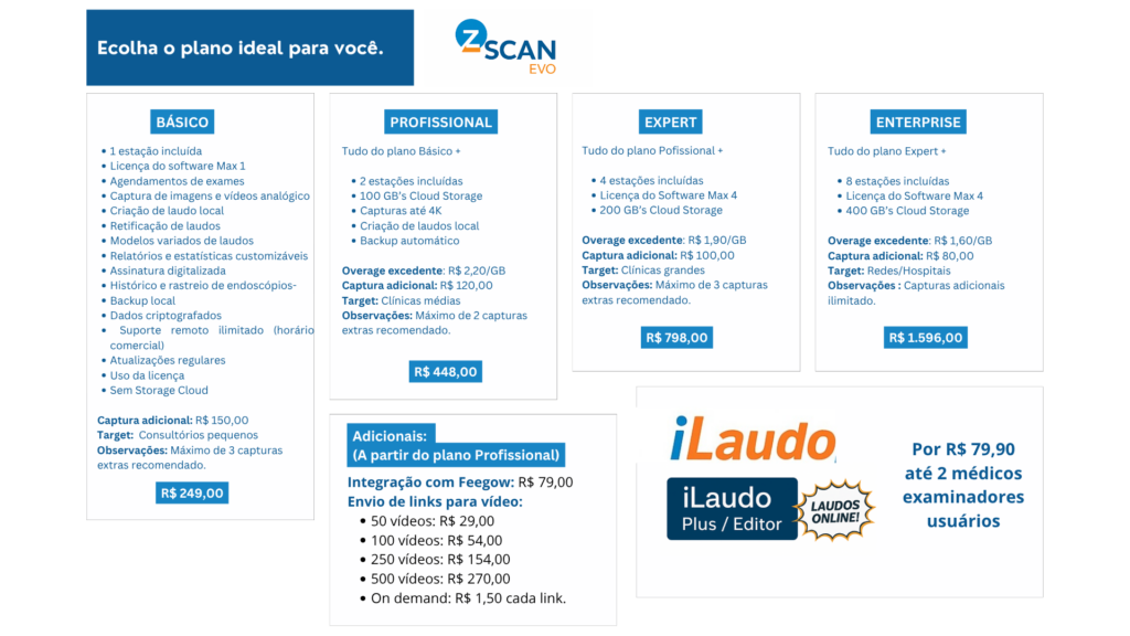 Sistema de captura de imagens e emissão de laudos para TODAS AS ESPECIALIDADES com CONEXÕES DE VÍDEO HDMI/SDI/DVI. Contempla a instalação em 03 computadores (não inclusos) em rede e com banco de dados unificado, sendo 01 licença com função captura e 02 com função administrativa. Versão para Windows.